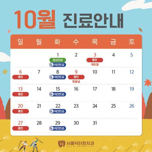 서울닥터한치과 24년 10월 진료 일정입니다.