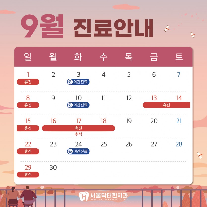 서울닥터한치과 24년 9월 진료 일정입니다.