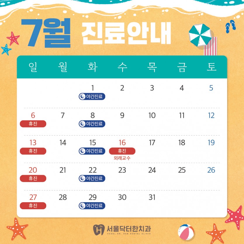 서울닥터한치과 25년 7월 휴진 안내입니다.