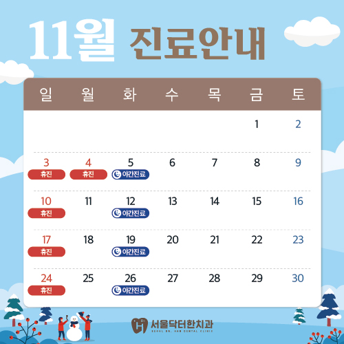 서울닥터한치과 24년 11월 진료 일정입니다.