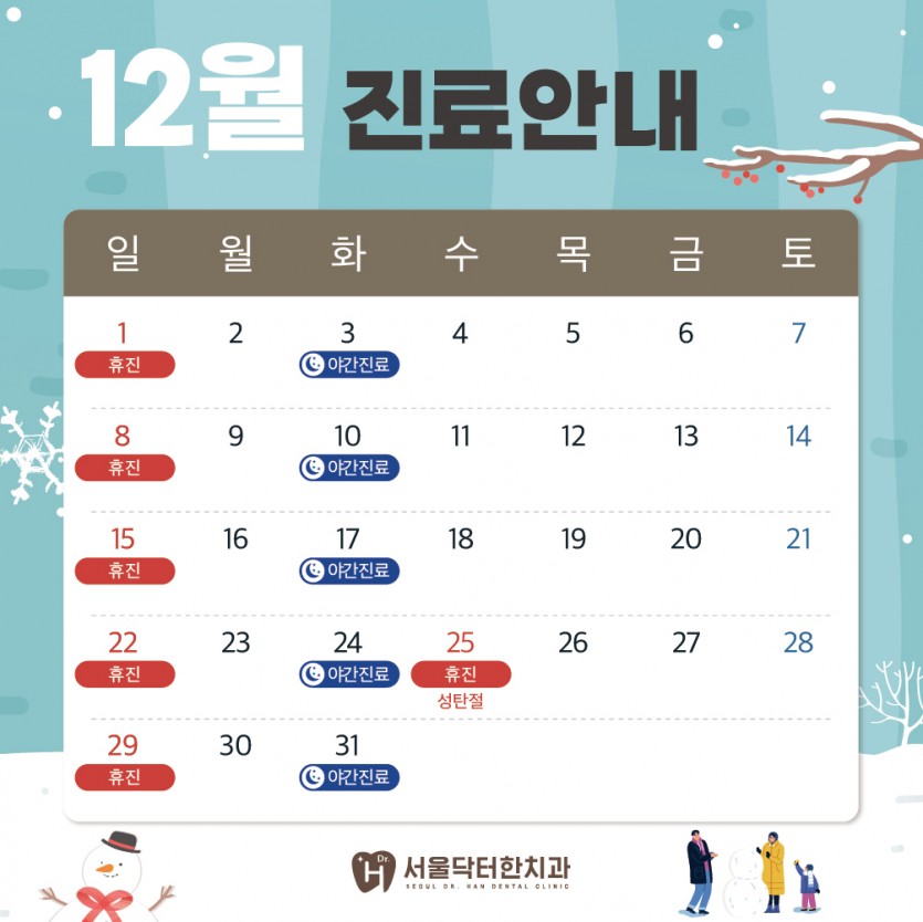 서울닥터한치과 24년 12월 휴진 안내입니다.
