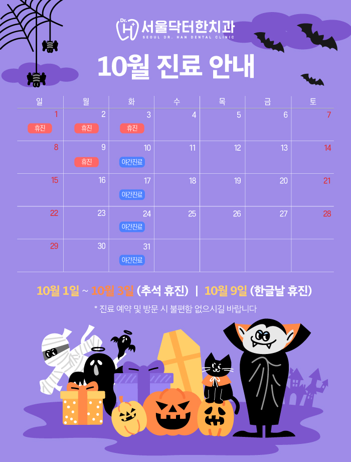 서울닥터한치과 10월 진료 일정 안내입니다.